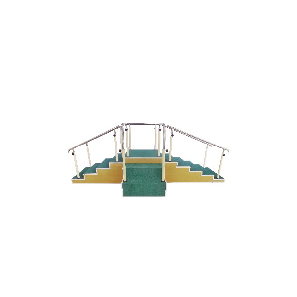 材质:优质钢材,底板为优质木材。尺寸:320×135×108-130cm,相邻台阶距离8,10,12cm,扶手杠调节范围0~34cm, 扶手杠侧向额定载荷50kg,阶梯额定载荷100kg。用于患者恢复日常上下楼功能。